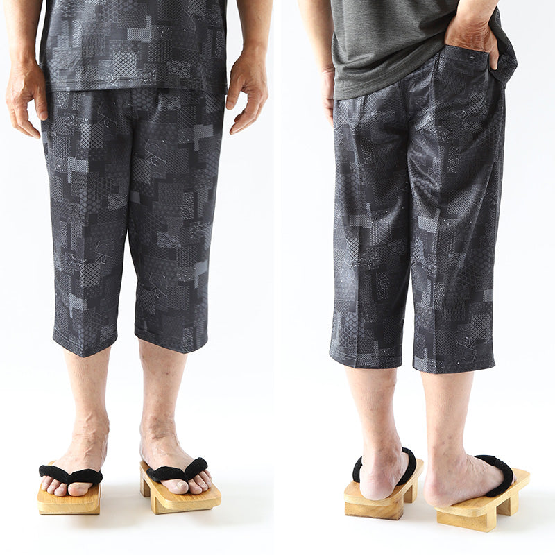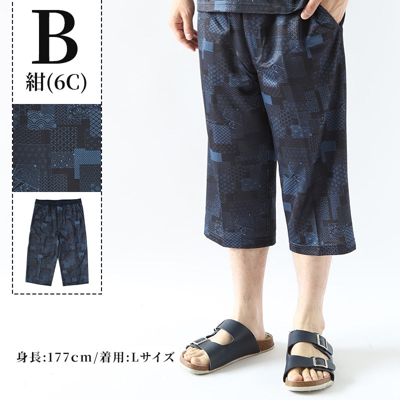 接触冷感 パンツ メンズ パンツ 和風 メンズ 夏 大きいサイズ 和柄 M~4L おしゃれ 涼しい 和服 和装 パジャマ 寝巻き 部屋着 ルームウェア アウター 半ズボン 短パン 父の日 ギフト プレゼント 30代 40代 50代 ブラック ネイビー M L LL 3L 4L (在庫限り)