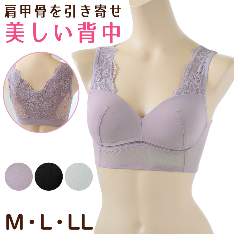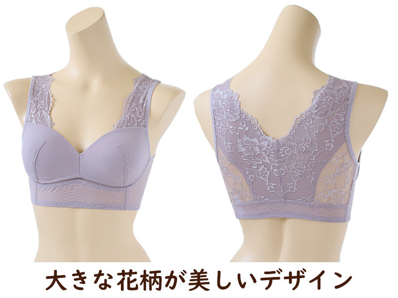 ブラジャー 補正 下着 レディース 女性 ストレッチ ノンワイヤー M L LL (補整 インナー ノンワイヤー 姿勢矯正 引き締め フルカップ レース メッシュ 花柄) (在庫限り)