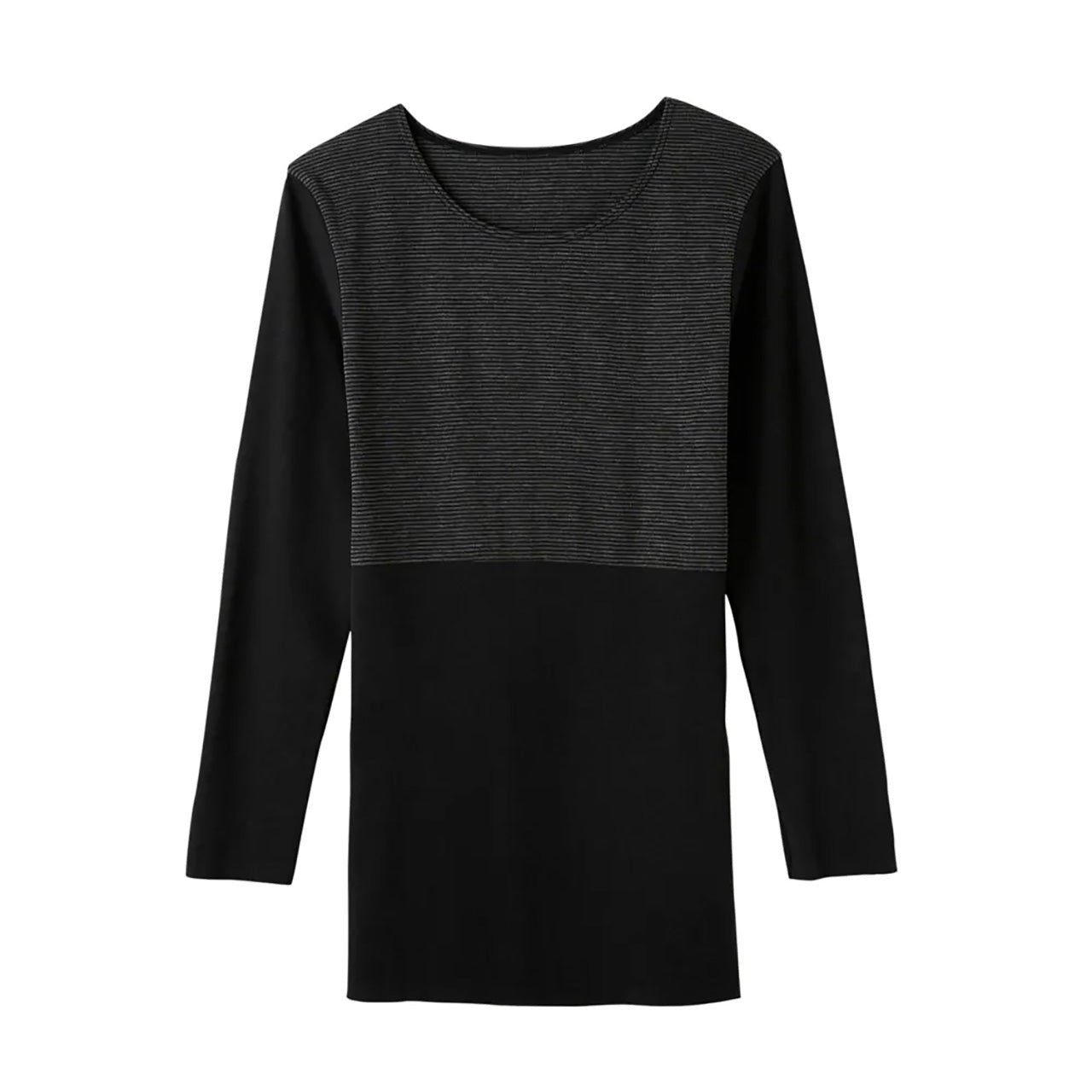 綿混/吸湿発熱/脇縫いなし/襟あき狭め