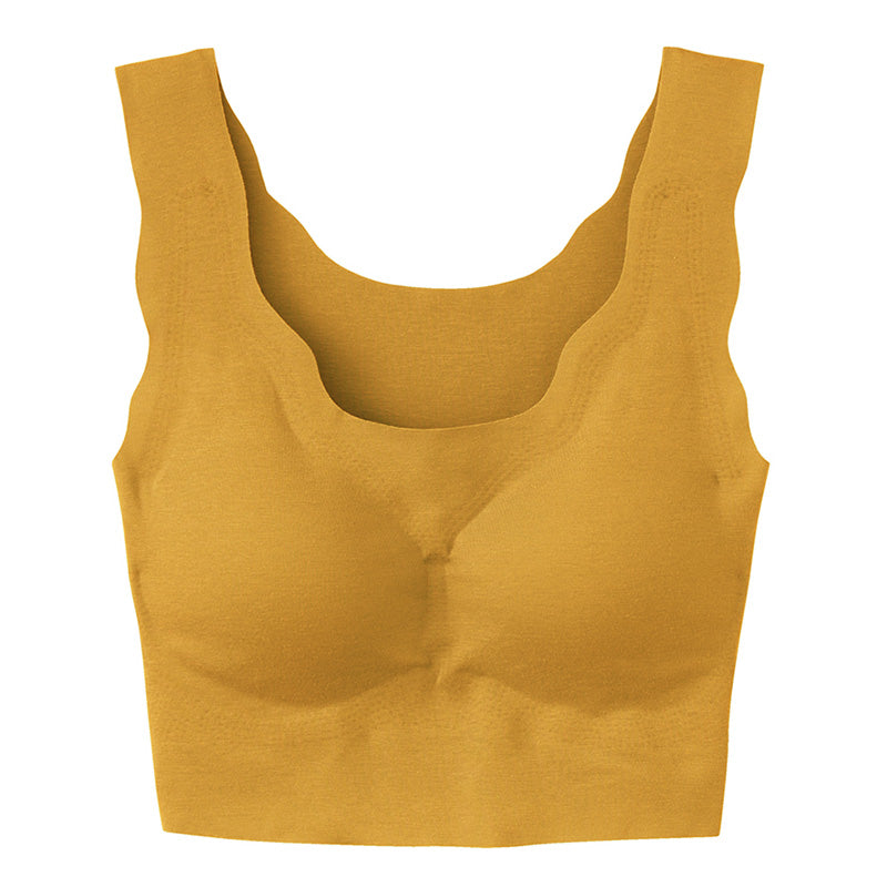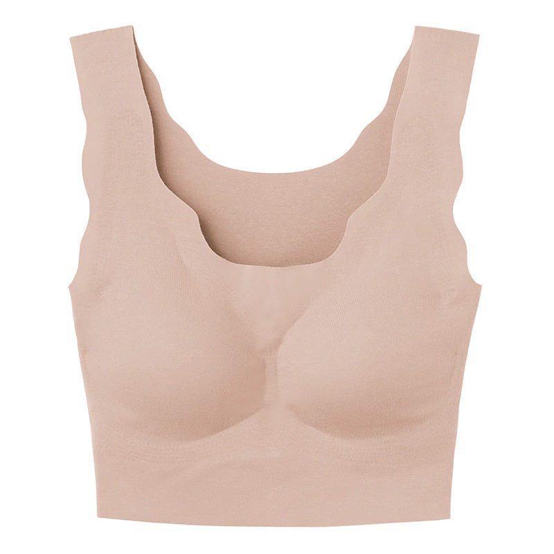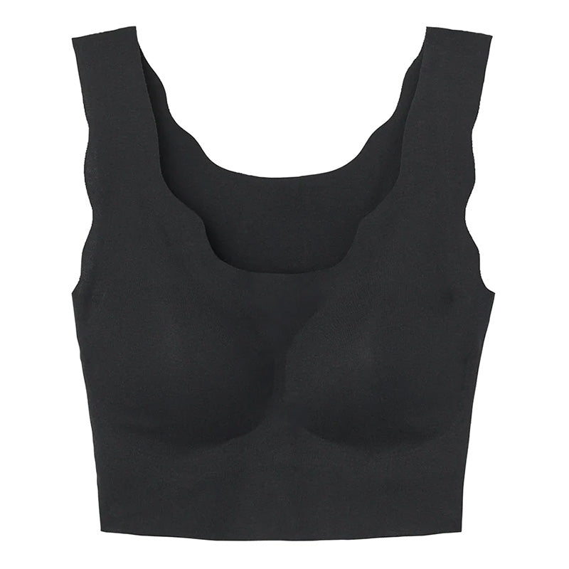 アンダーゴムを使用していないので、窮屈感が軽減されます。背中からバストにかけての締め付けを減らしました。