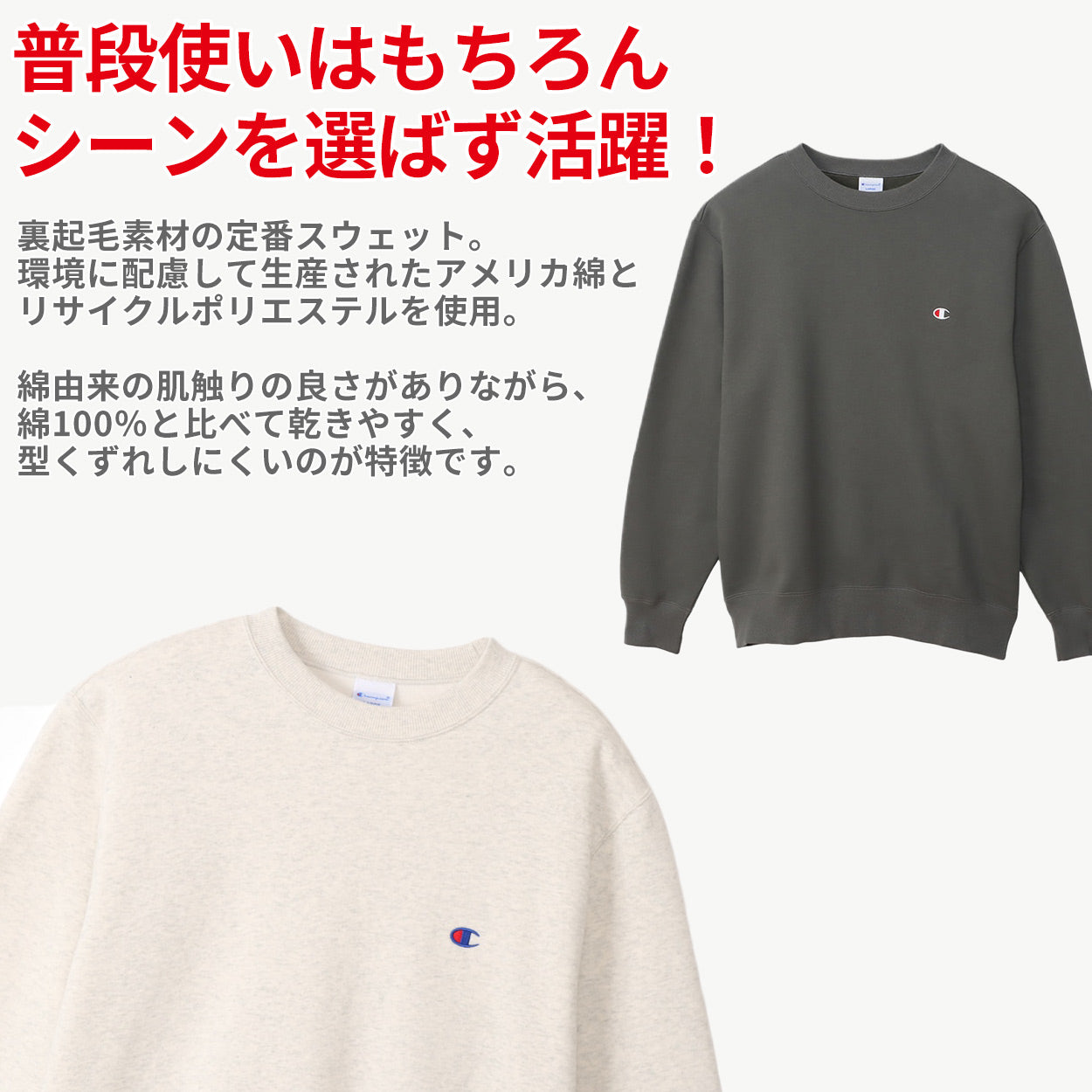 Champion/チャンピオン/メンズ/紳士/男性/男用/mens/アウター/トップス/スウェット/スウエット/スエット/トレーナー/長袖/綿混/無地/ワンポイント/シンプル/ベーシック/カジュアル/地味/灰色/ねずみ色/黒色/紺色/ネビー///しまむらファンにおすすめ/c-rec-aw23 m-out-tra C3-Y037/HJ/hj049