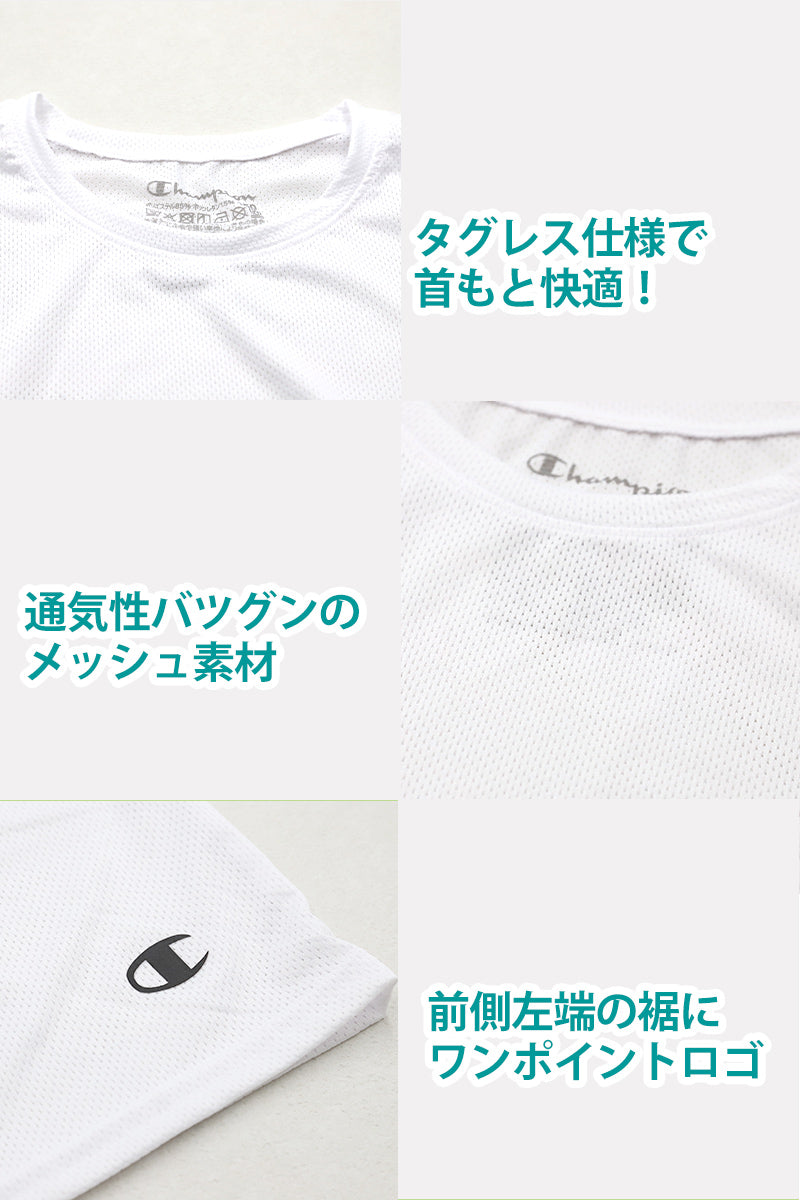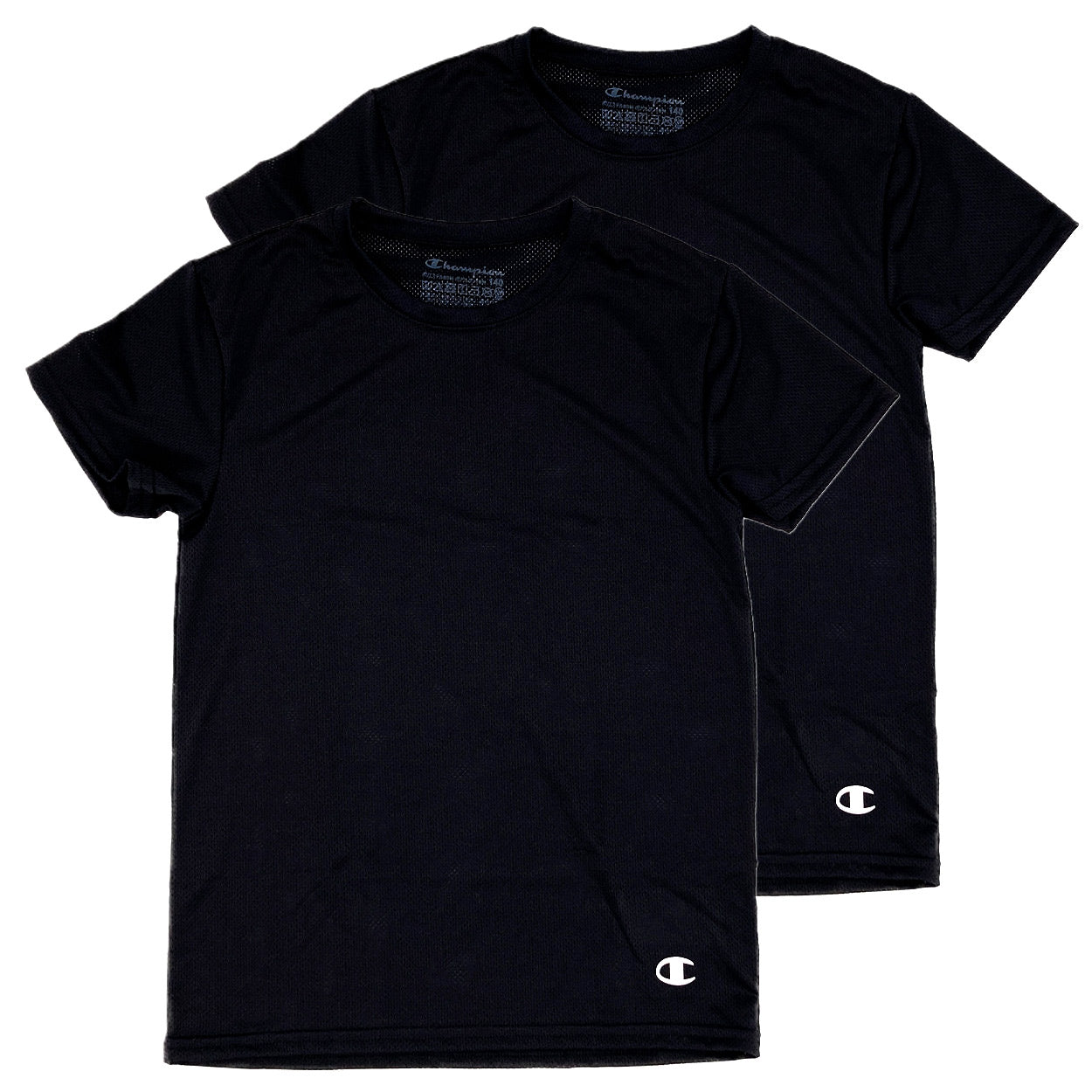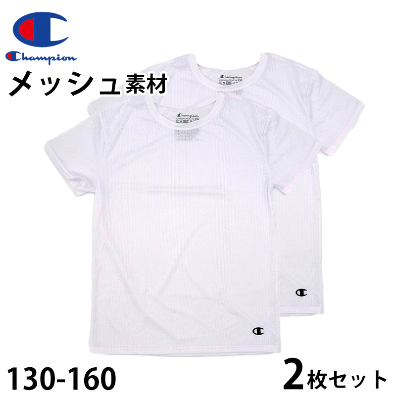 チャンピオン キッズ tシャツ メッシュ 半袖 子供 下着 男の子 インナー 2枚セット 130cm~160cm 肌着 男子 ジュニア 130 140 150 160 女の子 速乾 クルーネック スポーツ 白 黒 (在庫限り)