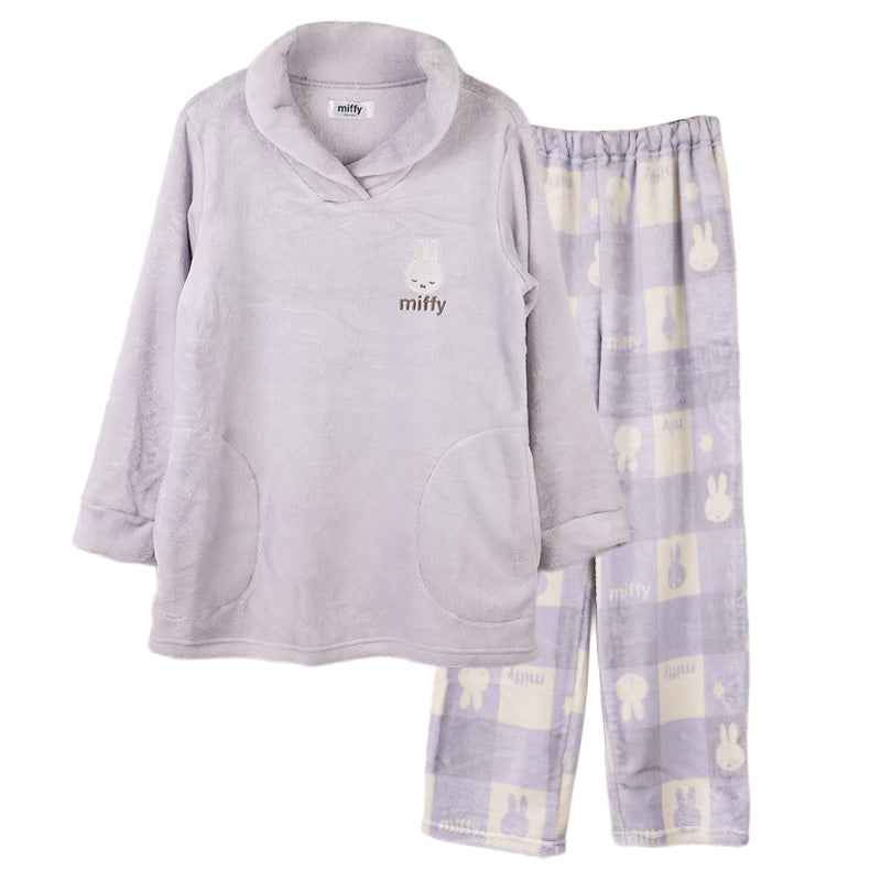 ミッフィー レディース パジャマ セットアップ 上下セット M L LL ふわもこ miffy 部屋着 ルームウェア ふわふわ もこもこ 暖かい 防寒 あったか かわいい キャラクター 大人女子 おしゃれ トップス ボトムス 母の日 プレゼント ギフト