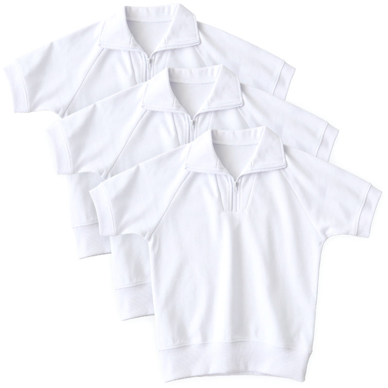 【3枚セット】体操服 半袖 襟付き ハーフジップ 小学生 体操着 小学校 男子 女子 白 110~160cm 半そで ファスナー チャック 衿つき スクール 体育 運動会 衣替え 子供 子ども キッズ (送料無料)