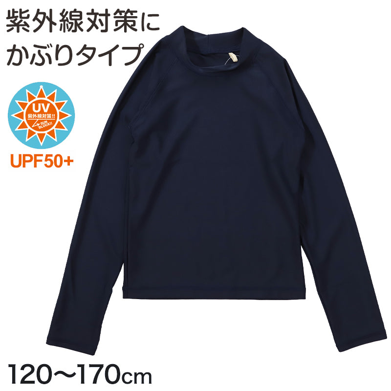 ラッシュ―ガード スクール チャックなし 長袖 120cm~170cm かぶりタイプ 男の子 女の子 ジップなし ファスナーなし 学校 プール 水着 スクール水着 無地 紫外線対策 UVカット (在庫限り)