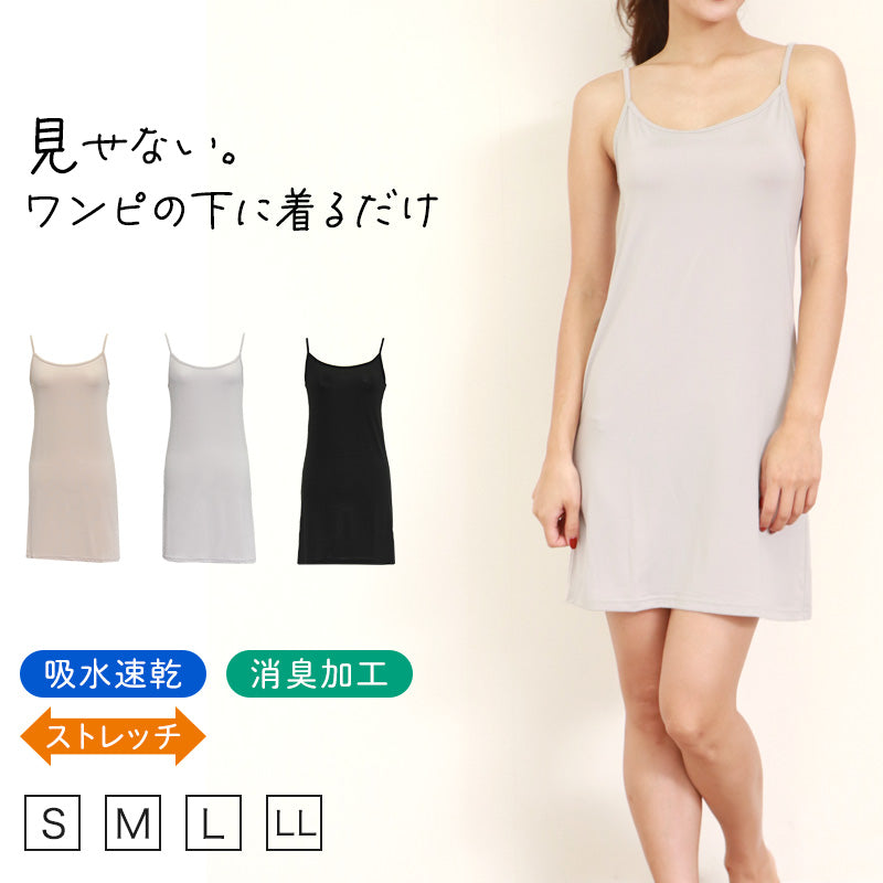 スリップ キャミソール 透けない レディース 80cm丈 S~LL ワンピース インナー 透け防止 ランジェリー ペチコート 下着 肌着 サラサラ 肌色 黒 シンプル S M L LL
